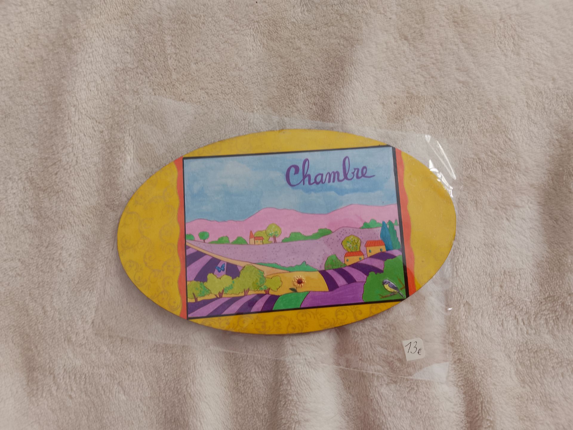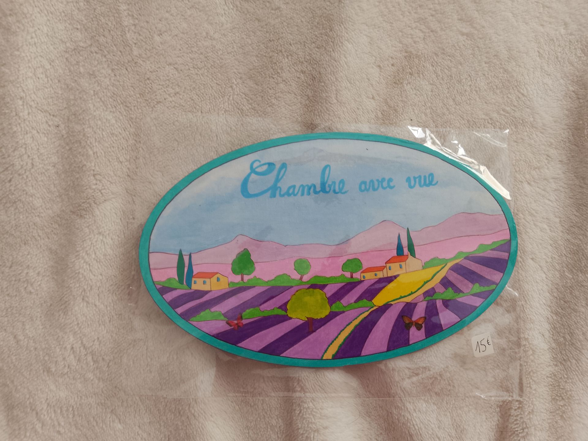 décorées à l’acrylique. Chaque plaque est soigneusement peinte à la main, offrant des designs variés allant des motifs floraux délicats aux scènes pittoresques de la Provence. Que ce soit pour une chambre d’enfant, une salle de bains ou une entrée,